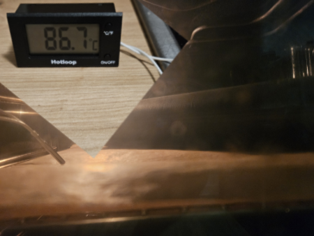 Hi Ralf, ich habe den Backofen auf etwa 85 Grad vorgeheizt und gewartet, bis sich die Temperatur eingependelt hat. Die Schwankungen lagen bei mir so zwischen 82,5 und 88 Grad. Das Körperrohr habe ich dann 1,5 Stunden bei dieser Temperatur drin gelassen. Danach habe ich die Temperatur schrittweise, immer um ca. 10 Grad, gesenkt. Bei etwa 55 Grad habe ich den Ofen einfach ausgemacht, allerdings lag das mehr daran, dass es schon spät war. Ich habe die Ofentür dann nicht mehr geöffnet und alles langsam abkühlen lassen. Mehr hatte ich zu dem Thema nicht gefunden und hoffe, dass es so richtig war. Das Tempern an sich ist immer, eine bestimmte Temperatur eine Weile halten und dann so langsam als möglich, vor allem gleichmäßig, abkühlen lassen. Das müsste für ASA zwischen 80-100 Grad liegen. Wobei Asa, ab 95 Grad und über längere Zeit, schon kritisch werden kann. Grüße Daniel Zitat: Original geschrieben von RalfB