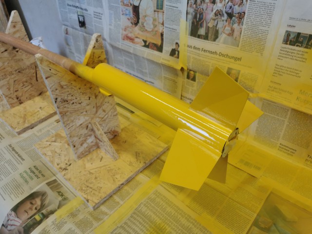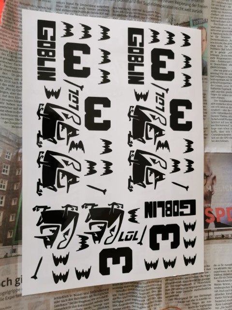 Die keine Version habe ich mit RAL 1003 signalgelb lackiert, zum Testen. Farbton sieht ganz gut aus, werde ich auch für meine 3" Version benutzen. Decals für diese Goblin habe ich auf Wasserschiebefolie gedruckt, mal sehen ob das klappt