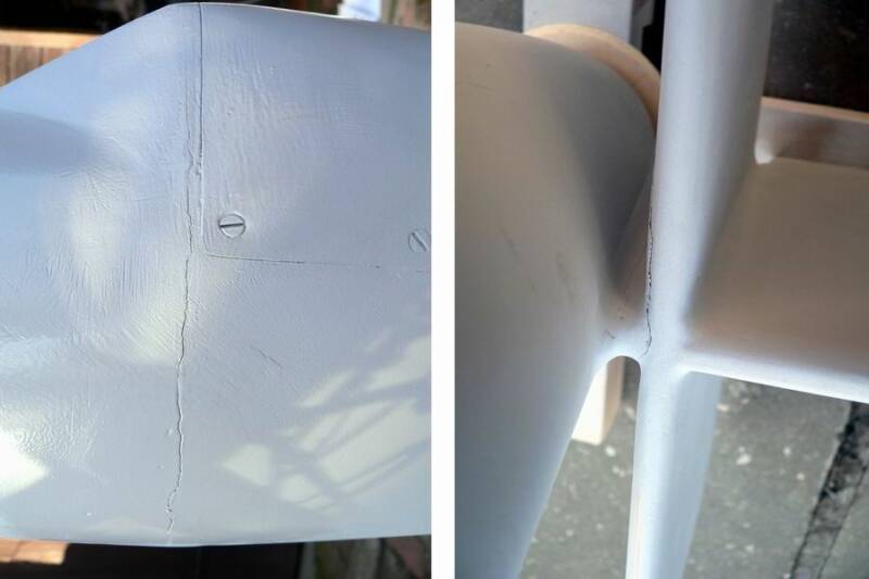 Aber... jetzt kommt es ganz blöd wiedermal. Als ich das Teil, es war noch nicht ganz trocken, hinein tragen will, fällt es doch aus ca. 1m volle Rückenlage auf den Betonboden... Ich glaube mir ist fast das Herz stehengeblieben. Nach anfänglicher Begutachtung dachte ich: Na wenn der Sturz nicht mal nen Kratzer macht, dann ist sie wirklich stabiel gebaut. Doch... oh weh, zwei Haarrisse  - was jetzt... jetzt sind bei mir bestimmt auch noch die letzten Haare grau geworden. Grüßle, Rolli Folgende Datei wurde angehängt: