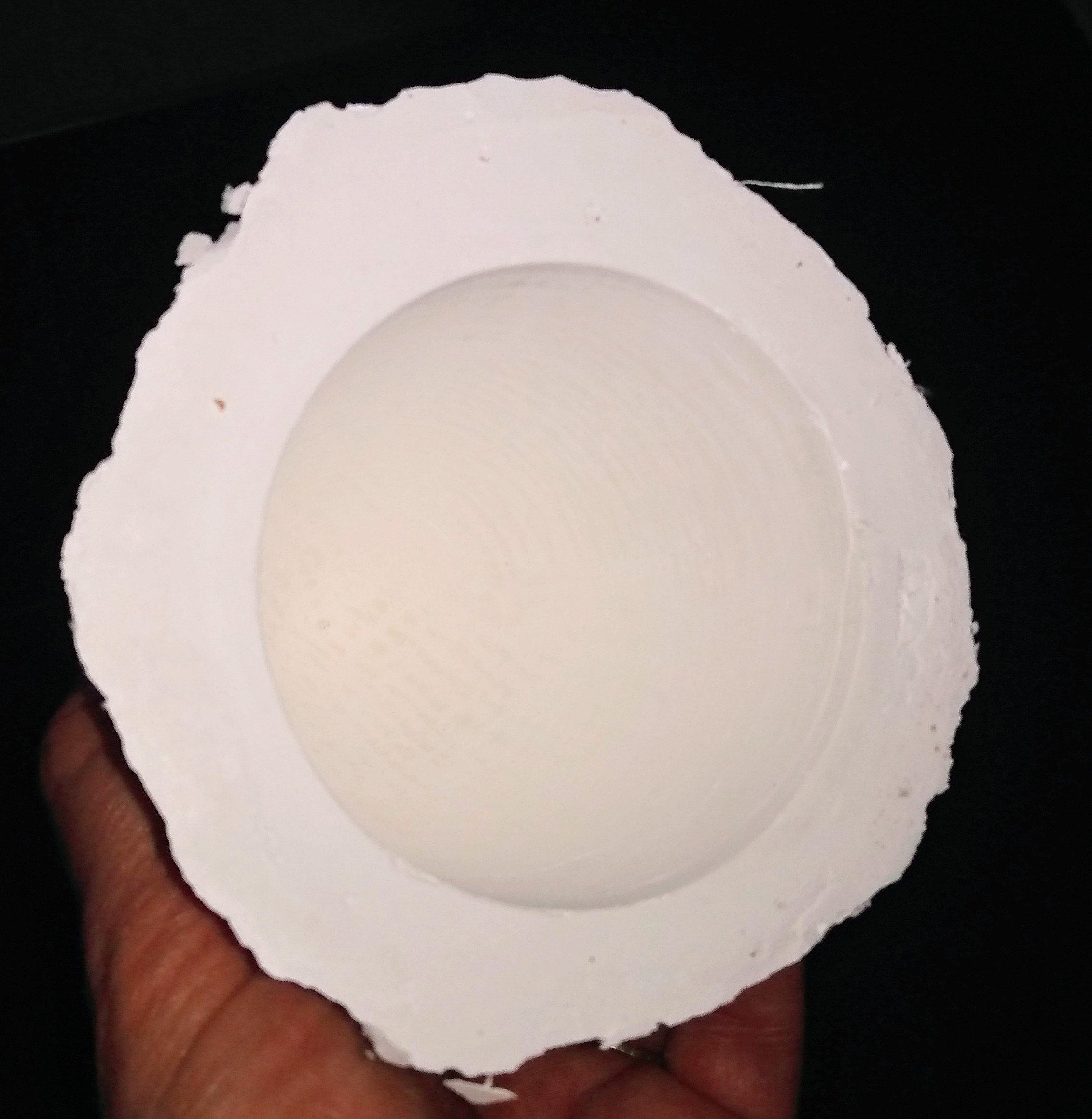 Nachdem mir die Hände jetzt nicht mehr wehtun vom vielen was auch immer, habe ich dann doch Gewalt anwenden müssen. Typischer Anfängerfehler, aber ich hätte den saugfähigen Gips erst versiegeln müssen vor Auftrag des Trennwachses. So blieb nur die Säge (nicht die Geile )