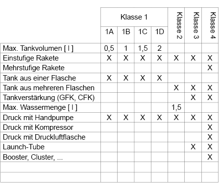 danke für die Zahlreichen Verbesserungsvorschläge! Die sind wirklich sehr gut! Ich habe sie mal in mein erstes Konzept eingearbeitet, weiter unten findest du das Ergebnis. Hallo Achim, erstmal danke für die Historie und die Verlinkung zum Forumsbeitrag, beides werde ich mir morgen anschauen. Du sagst, dass die Klasse B (Einstufige Wasserraketen mit beliebigen Tankvolumen auf Basis mehrerer Kunststoff-Flaschen) zu Gefährlich ist. Dem stimme ich nicht zu. Natürlich halten gewebeverstärkte Raketen mehr Druck aus, aber bei einem Rekord geht man immer ans Limit. Will heißen: Ob ich eine nicht verstärkte Rakete bei 9 bar starte, und die Rakete bei 9,5 bar explodiert, oder ich eine verstärkte Rakete bei 16,5 bar starte und aus Erfahrung weiß, dass die Tanks bei 17 bar explodieren – der einzige Unterschied ist der veränderte Druck, und eine Explosion bei 17 bar ist noch wesentlich schlimmer als eine bei 9 oder 10 bar. Warum macht nun aber so eine Klasse Sinn? Ganz einfach. Beim Verstärken handelt es sich wieder um eine eher „professionellere“ Technik, die viele davon abhalten wird, in einer kombinierten bzw. unlimitierten Klasse ihr Glück zu versuchen Zudem ist der Unterschied zwischen der von mir vorgeschlagenen A- und B-Klasse wesentlich größer, als deine vorgeschlagene Trennung einer max. 1,5L-Klasse und einer 1L-Klasse, bei der der Anforderungsgrad genau gleich ist. Und Klassen sollten sich, denke ich, vornehmliche nach dem Anforderungsniveau richten. Daher habe ich in das neue Konzept Marcels Vorschlag integriert und die 1L-Klasse wieder zur 1-Flaschen-Klasse abgeändert – meiner Meinung nach ist die nun vorhandene Klassen-Struktur ideal. Aus denselben Gründen halte ich auch die Limitierung einer Launchtube für sinnlos, denn diese ist ja nicht kompliziert zu bauen. Die 1,5 L Flaschen von Coca Cola habe ich letztens noch beim lokalen Getränkehändler gesehen. Gleichwohl werden diese aber wohl bald endgültig verschwinden. Viele Grüße Julian vom Raketfued-Team _________________________________________________________________ KONZEPT 2: Regelwerk für einen deutschen Wasserraketenrekord Das vorliegende Regelwerk wurde von erfahrenen Wasserraketenbauern erarbeitet. Es soll faire Wettbewerbsbedingungen zur Aufstellung von Wasserraketen-Höhenrekorden in Deutschland schaffen. Unabhängig von diesem Regelwerk sind aktuelle Gesetzte und behördliche Vorgaben zu beachten. 1) Gesetzliche Vorgaben Beim Start einer Wasserrakete sind die gesetzlichen Vorgaben zu beachten (§19 und §20 Luftverkehrs-Ordnung (LuftVO), detaillierte Informationen erhalten Sie bei den zuständigen Behörden/Ämtern). Es sollte vor dem Start sichergestellt werden, dass: - Weder Personen noch Sachen durch den Start, Flug und die Landung der Rakete gefährdet werden - Der Eigentümer des Start-/Landeplatzes das Starten/Landen von Wasserraketen gestattet - Die gesetzlich zulässige Flughöhe nicht überschritten wird - Vor Überschreiten der zulässigen Flughöhe eine entsprechende Aufstiegsgenehmigung vorliegt. 2) Rekordklassen Ein Höhenrekord kann in verschiedenen Rekordklassen aufgestellt werden: Klasse C: Wasserraketen auf Basis einer einzigen Kunststoff-Flasche. Aktueller Rekord: --- Klasse B: Einstufige Wasserraketen mit beliebigen Tankvolumen auf Basis mehrerer Kunststoff-Flaschen. Aktueller Rekord: --- Klasse A: Einstufige Wasserraketen mit beliebigen Tankvolumen auf Basis mehrerer Kunststoff-Flaschen sowie einer Glasfaser- oder Kohlefaserverstärkung. Aktueller Rekord: 290m / RaketfuedRockets Klasse +: Offene Klasse: Einstufige, mehrstufige sowie Cluster-Raketen ohne weitere Beschränkungen. Aktueller Rekord: --- 3) Technische Vorgaben 3.1) Aufbau der Rakete: - Alle Einzelkomponenten (Drucktank (Klasse A, B, +), Spitze, Leitwerke, Bergungssystem) müssen selbst gebaut worden sein. - Der Drucktank darf keine metallischen Komponenten enthalten - Während der Start-, Flug- und Landephase dürfen sich aus Sicherheitsgründen keine Komponenten unkontrolliert von der Rakete lösen. - Die Rakete muss mit einem Bergungssystem ausgestattet sein. - Zusätzliche Teile, die sich während der Start-, Flug- und Landephase kontrolliert von der Rakete lösen (z.B. Booster) müssen sicher landen (Bergungssystem) - Die Rakete muss mehrfach verwendbar sein und beim Rekordflug keinen Schaden nehmen 3.2) Antrieb der Rakete: Die Wasserrakete darf nur mit Wasser und Luft angetrieben werden. Der Druck und das Mischungsverhältnis zwischen Luft und Wasser sind frei wählbar. Zur Erzeugung von Schaum darf sich in dem Wasser zusätzlich biologisch abbaubares Spülmittel/Seife befinden. 3.3) Die Startrampe: Die Startrampe muss über einen Auslösemechanismus verfügen, der einen sicheren kontrollierten Start der Rakete gewährleistet. Ein System, das bei Erreichen eines Maximaldrucks automatisch startet (z. B. Korken), ist aus Sicherheitsgründen nicht zulässig. Die Startrampe darf mit einer Launchtube (Rohr innerhalb der Rakete) ausgestattet sein. Die Launchtube darf beim Start nicht beschädigt und nicht von der Startrampe gelöst werden. 3.4) Bergung der Rakete: Das Bergungssystem muss so aufgebaut sein, dass die Rakete unbeschadet landet. Zum Auslösen des Bergungssystems können unterschiedliche Techniken (elektronisch, mechanisch) eingesetzt werden. Es dürfen sowohl industriell hergestellte als auch selbst gebaute Fallschirme eingesetzt werden. 4) Flug und Rekordantrag 4.1) Der Start: Die Rakete muss von einer am Boden fest verankerten Startrampe sicher gestartet werden und unbeschadet landen. 4.2) Messung der Flughöhe: Die Höhe muss mit einem luftdruckabhängigen Höhenmesser gemessen werden. Der Höhenmesser muss kommerziell erwerbbar sein oder von einem vertrauenswürdigen Forschungsinstitut stammen, sowie die Flugdaten grafisch darstellen können. Eigenbauten sind nicht zulässig. 4.3) Dokumentation des Starts: Der Start muss mithilfe einer Bodenkamera dokumentiert werden, die Start, Flug und Ladung filmt