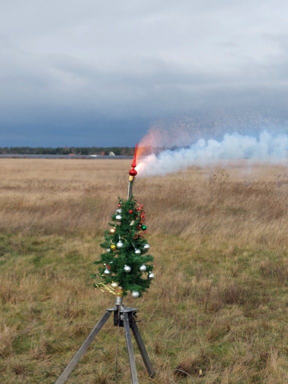 Alle Jahre wieder, fliegt der Weihnachtsbaum... ein vehementer Start und Flug Mein Startkoffer aus den 90gern bleibt jetzt auch im Planetarium zur Freude der Kinder und Besucher. Übrigens, bin alle meine übrigen Raketenteile losgeworden. Ciao, Rolli