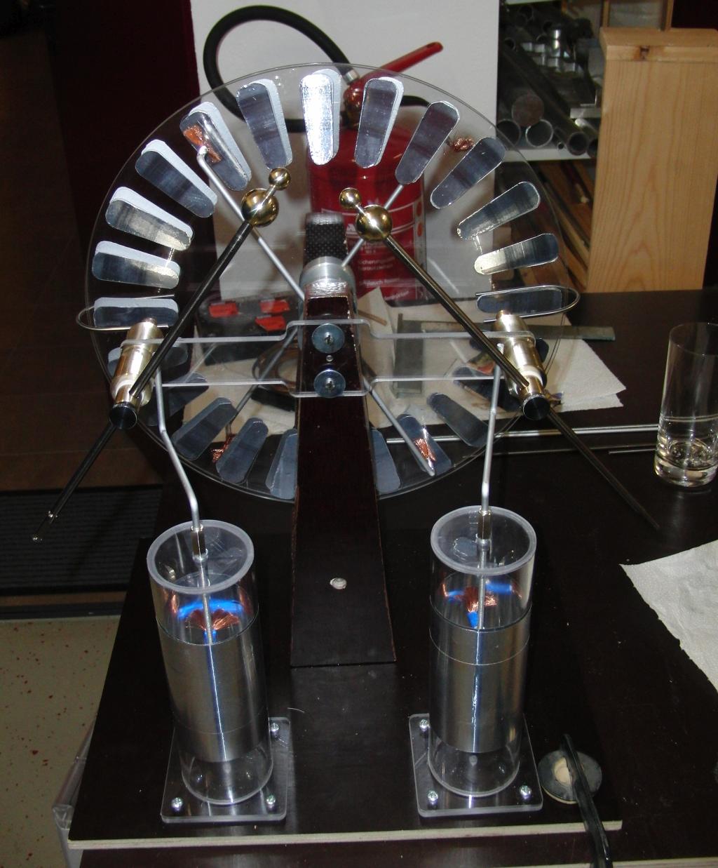 Eine Vorrichtung um durch wundersame und geheimnisvolle Weise nur durch Drehen an einer Kurbel Spannungen bis 40.000 Volt zu erzeugen! Seht her liebe Leute, welche geheimnissvolle Apparatur ich hier gebaut habe, zusammen mit zwei halbwüchsigen Burschen haben wir dies in unserer Erfinderwerkstatt ersonnen und erbaut :-) Always keep the pointy side up! |
