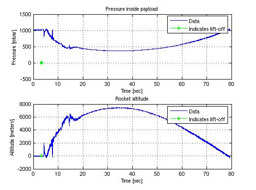 Die auslösenden Systeme waren ein RDAS mit 200 Hz Sampling des G-Sensors und mir gerade nicht bekannten Anzahl Samplings des Baro-Sensors und ein Denta-Mag. In den Baro-Daten ist tatsächlich eine mit der SALT-Kurve vergleichbare Zunahme des Drucks, d.h. ein scheinbarer Abstieg der Rakete verzeichnet, nur mal soviel vorweg. |