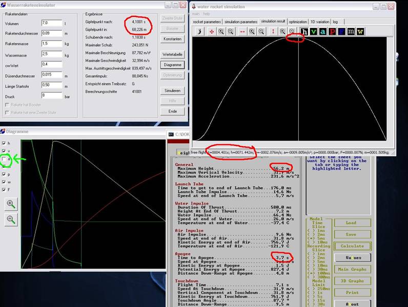 also er scheint doch ganz ordentlich zu Funktionieren, aber beim Zeichnen gibt es ein Problem. Wenn er versucht die Beschleunigung (a) zu zeichnen kommt der nette Fehler "Gleitkommadivision durch Null". Das solltest du noch abfangen. Ich bin schon auf die Zusatzfeatures gespannt (Wenn du fertig bist kannst du ja noch ein wenig Kosmetik betreiben )Hier ein Bild, dass zeigt, dass jeder Simulator etwas anderes zeigt, aber alle ungefähr das gleiche meinen Höhen: Deiner 68m, rechts 71m und unten (P.A. Grosse) 56m t(h)rust in GARDENA |