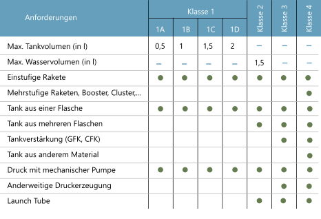 den Gedanken mit der GFK verstärkten Einflaschen-Rakete hatte ich auch schon. Aber da muss mann ja nur sagen, Klasse 2 und 3 sind Ein- oder Mehrflaschenraketen. Mit den jeweiligen Kriterien pro Klasse unterscheiden sich die Klassen dann immer noch. Es ist doch so, dass die Klassen aufeinander aufbauen. Von Klasse zu Klasse wird mehr erlaubt. Somit ist Klasse 4 dann Deine "Ultimativklasse", richtig? Das letzte Formular hatte ich bereits vor Deiner Layoutbearbeitung fertig. Ein endgültiges Formular erstelle ich, wenn alle Sachen geklärt sind. Gesendet von meinem GT-N8010 mit Tapatalk If You Don't Try, You'll Never Know |