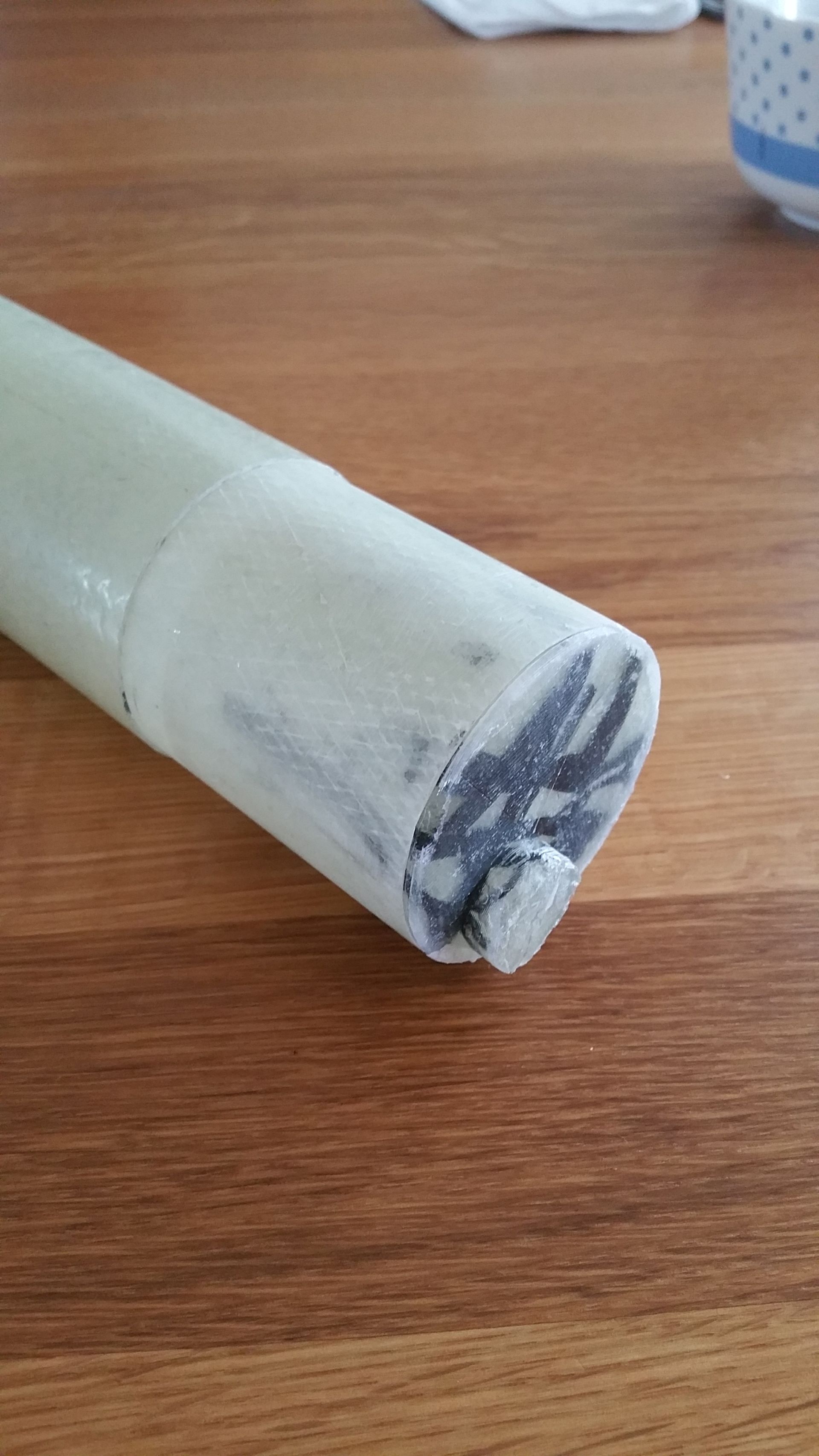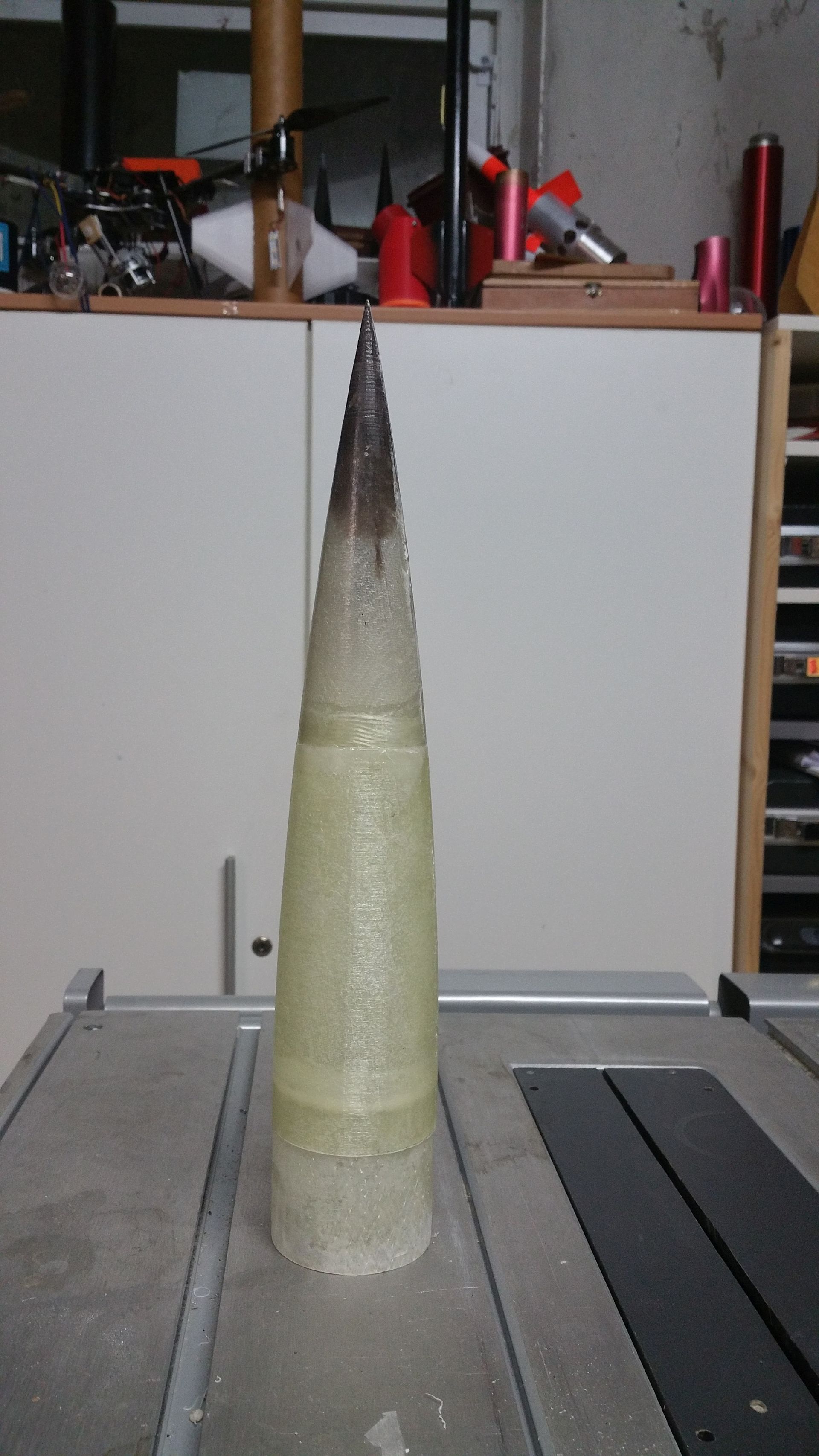 Hier ist der Bulkhead der E-Bay. Das Ausformen war nicht so leicht wie bei den konischen Teilen, hat aber ohne Beschädigung der Form oder des Laminat geklappt. da Ganze past perfekt in den Kuppler.