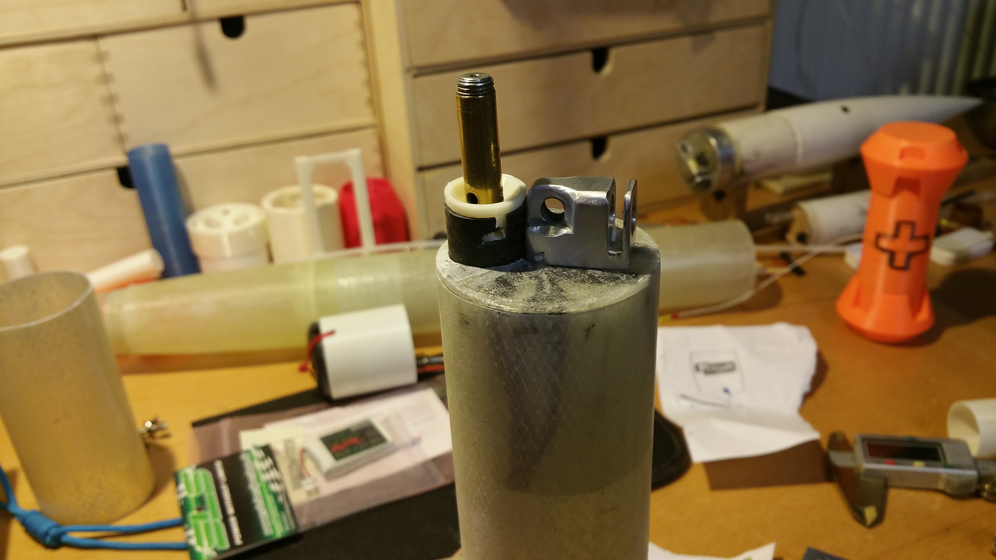 Habe die Shockcord-Halterung eingeschraubt und die Railbutton angebracht.