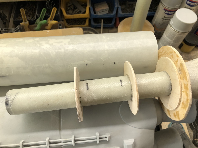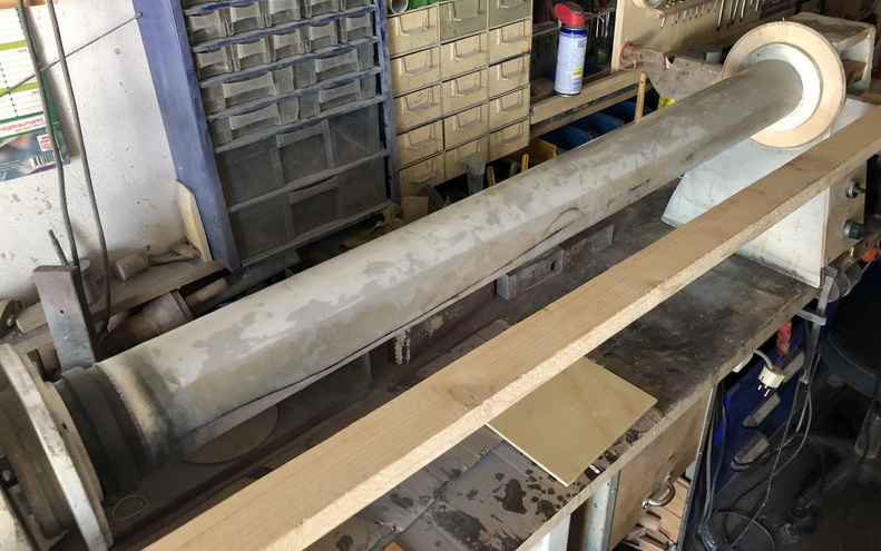 Habe wieder meine Laminierstation für GFK-Rohre aufgebaut um die Boosterrohre zu machen.