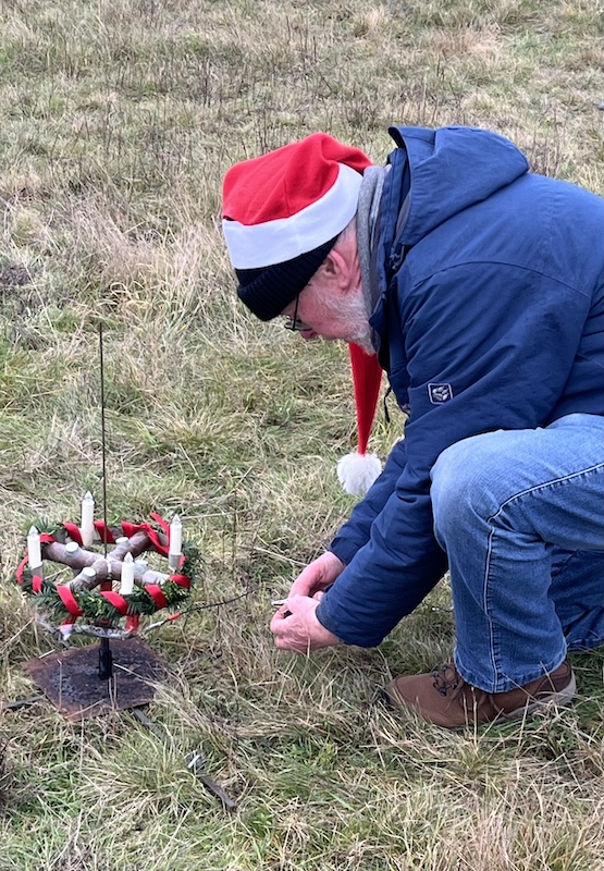 Achim zündete die Kerzen dazu an! Oben ... ... und unten. Huiii !