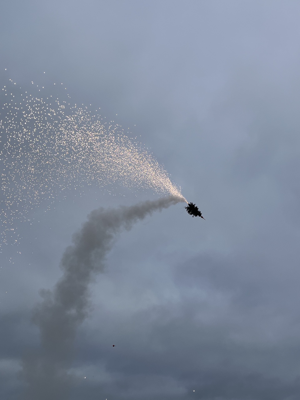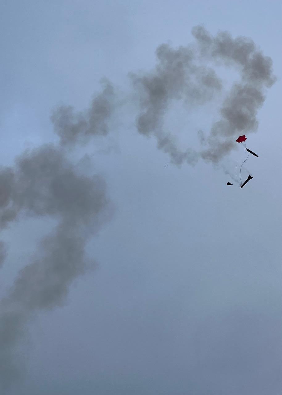 Hallo, Ich habe noch eine schöne Bilderserie vom Flug meiner Europa bekommen, danke an Jack für die tollen Bilder. Schöner Start, von Andreas mit grünen Rauch in Szene gesetzt. Ab geht's Leider platzte der mittlere D9 kurz nach der Rampe, wodurch auch die Trennung der Rakete erfolgte Und dann ging der wilde Flug los Hin und her Um dann relativ gut zu landen Die Flughöhe lag unter 100ft, daher hat der RRC3 Flugcomputer den Start nicht erkannt, die Flugdaten wären sicher interessant gewesen. Zum Glück hat die Europa nur eine leichte Beschädigung, diese wird wieder repariert. Gruß Benni