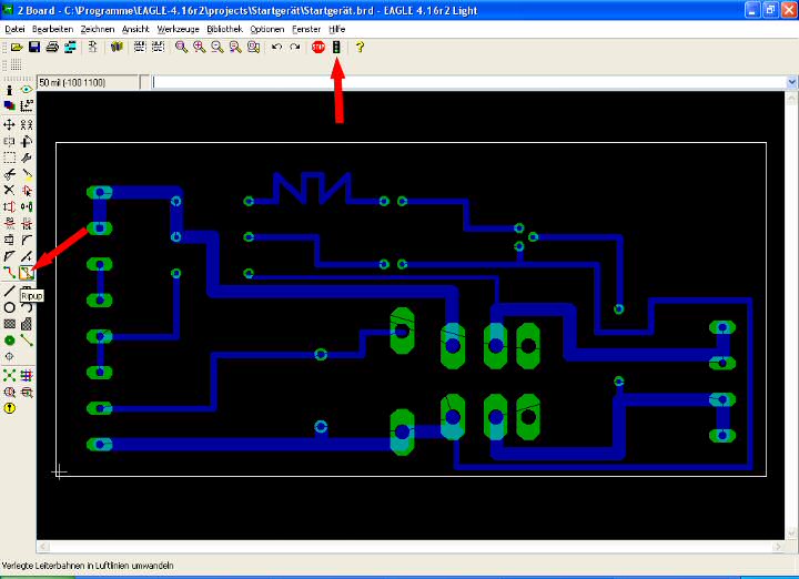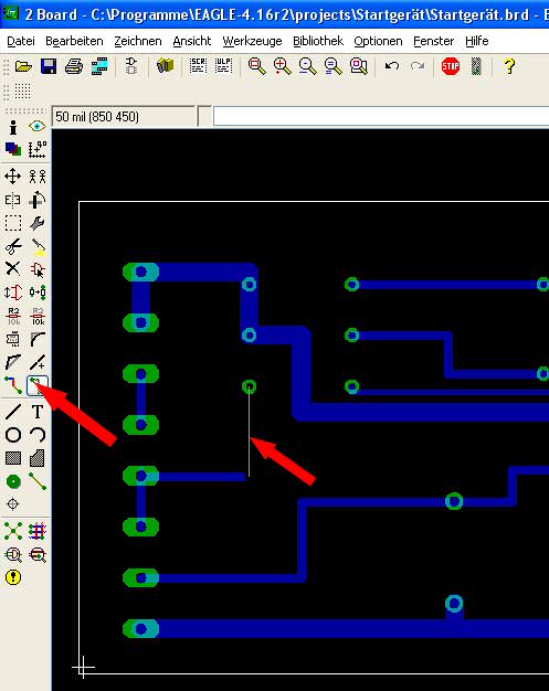 Da wir ja unsere Platine vorher mit dem Autorouter "versaut"