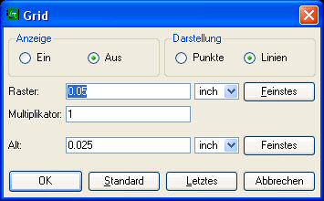 Die Umschaltung zwischen inch u. mil geeschieht über das Raster-Fenster. Zu Erreichen über das Menü Ansicht-->Raster !!!