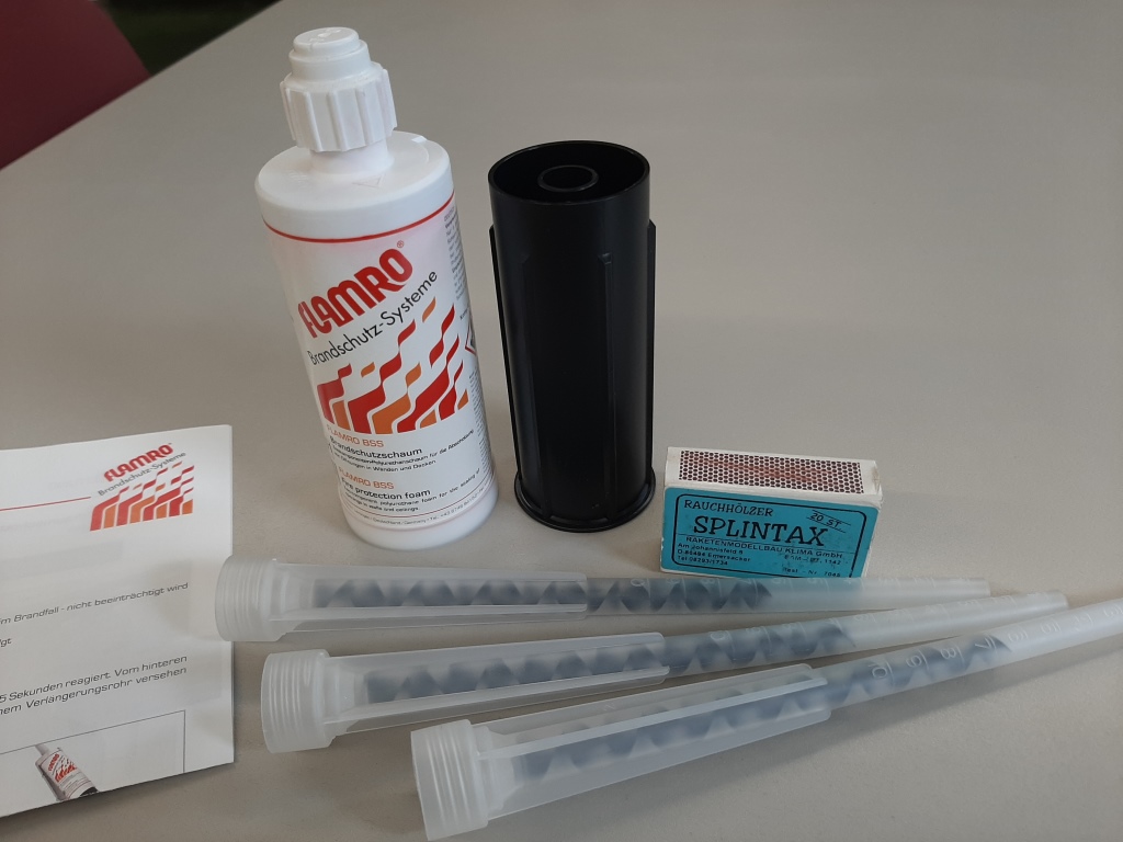 Zitat: da gibt es im Baumarkt so kleine Kartuschen Brandschutzschaum, zum schotten...
