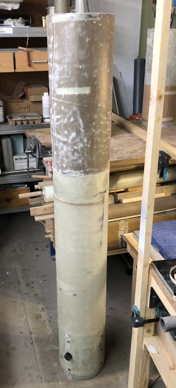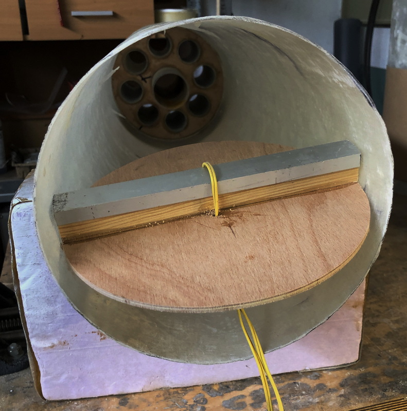 Sorry, aber meine Idee gefällt mir doch am Besten. wir haben 8 Booster und da montiere ich eben 8 Triebwerksverkleidungen an. Ist außerdem eine kleine Verstärkung bei der Landung. Heute habe ich die große Boostertube verlängert. Diesmal wird mir der Fallschirm Spant nicht brechen, weil mit einem Alu-U-Profil verstärkt. Der gelbe Draht dient nur zum andrücken an den Klebekuppler. Der wird später durch ein Drahtseil (Bowdenzug) ersetzt und nach unten gehängt. Die Tuben passen super zusammen. Fast zu schade um zusammen zu kleben. Man könnte auch einen Spalt lassen und da die Stringers (3D-Druck) einzukleben.  Wenn man immer nur 3 Stringers auf eine Grundplatte (2mm dick) druckt, könnte man den Spalt füllen und die Krümmung des Rohres vernachlässigen. Louis hatte mir vor einiger Zeit das angeboten zu machen. Ich denke aber, er wird bald viel zu tun bekommen mit der Elektronikbay die kommt ja im Rohbau demnächst dran. Ralf, kannst Du das machen?