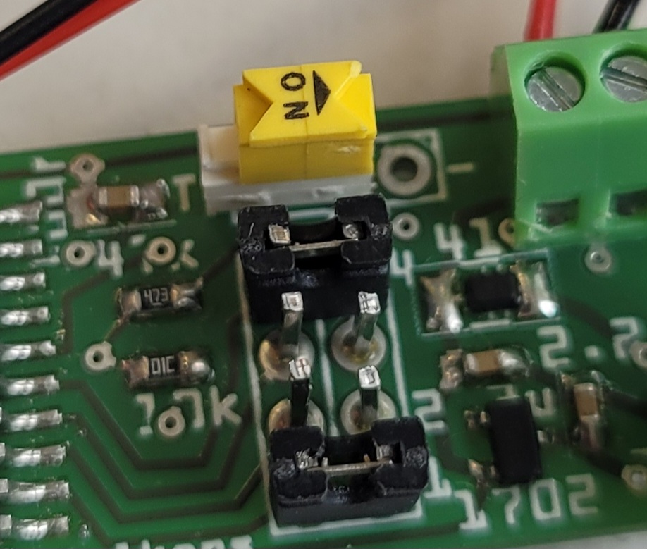 Wird langsam Ich hause den Tracker erstmal komplett ein und mache eine Schlaufe aus Kevlar o.ä. dran um ihn in allen Modellen an die Schockleine hängen zu können. Für die Codierung habe ich Ersatz für die Jumper besorgt, die kleinen Schalter haben das gleiche Rastermaß und nennen sich JSA4. Als An/Aus-Schalter dient der Schraubschalter von Stefan und die ganze Baugruppe wird durch Heißkleber zusammengehalten und dann einfach in das Gehäuse eingeschoben: Zum Laden habe ich mir kleine Laderegler besorgt (auf Platine) die per USB 1S Lipos laden können. Beim tracker wird der nicht mit verbaut, beim Empfänger schon.