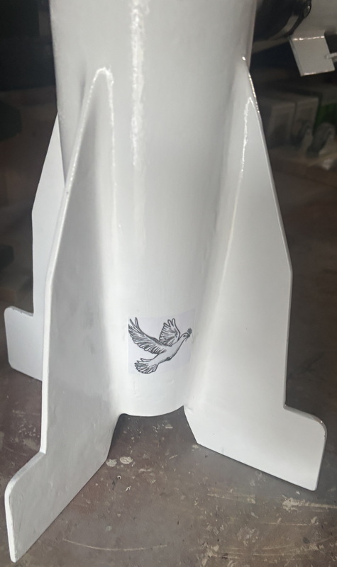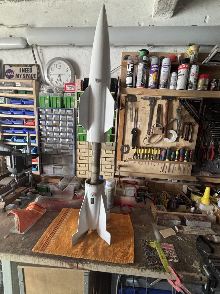 Fast wäre es vor ein paar Tagen bei mir in Meiner Werkstatt zur Katastrophe gekommen als ein riesengroßer Baum auf meine Garagenwerkstatt stürzte. Ist aber zum Glück 1m dahinter aufgekommen. Bei meiner letzten Rakete (Wasserfall) habe ich Achims Namensidee aufgegriffen und eine Friedenstaube draufgepappt.  Ciao,Rolli