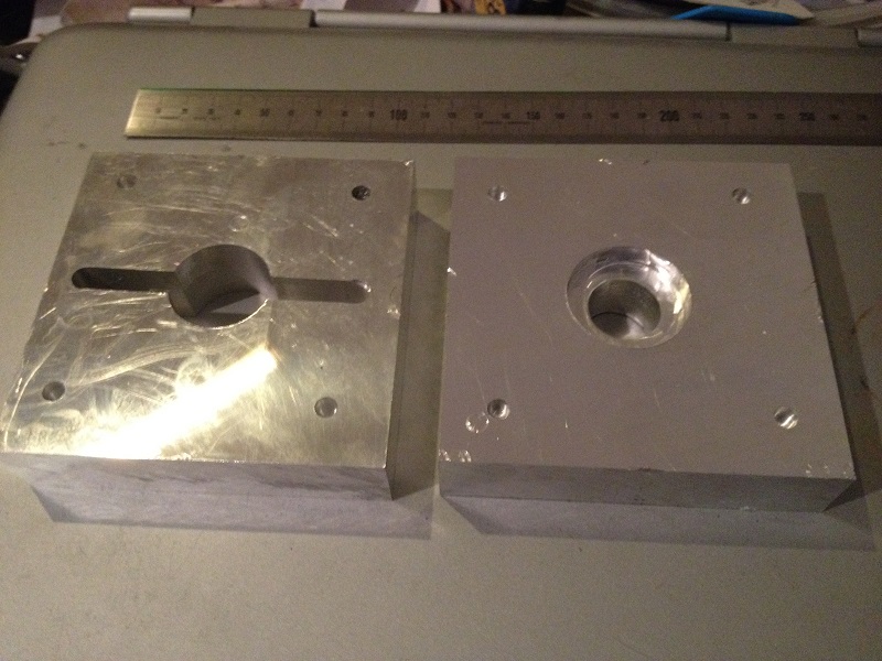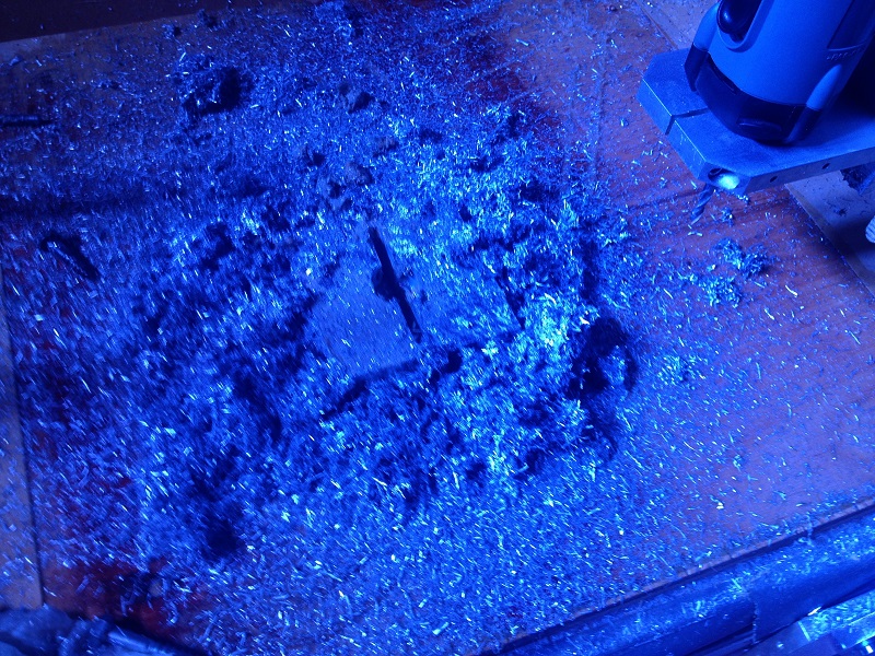 Habe gerade mal zwei Teile für den Extruder aus Dural Aluminium gefräst. Estlcam bietet eine Trochoidalfräs-Funktion, die wollte ich mal testen. Zum Anfang mit einem 6mm Zweischneider, 10mm Zustellung und 800-1200mm/min Vorschub. Da braucht man auf einer Modellbau-Fräse beim ersten Mal gute Nerven, obwohl da noch einiges mehr geht. Hat für das erste Mal recht gut funktioniert, beide Teile sind voll im Maß: