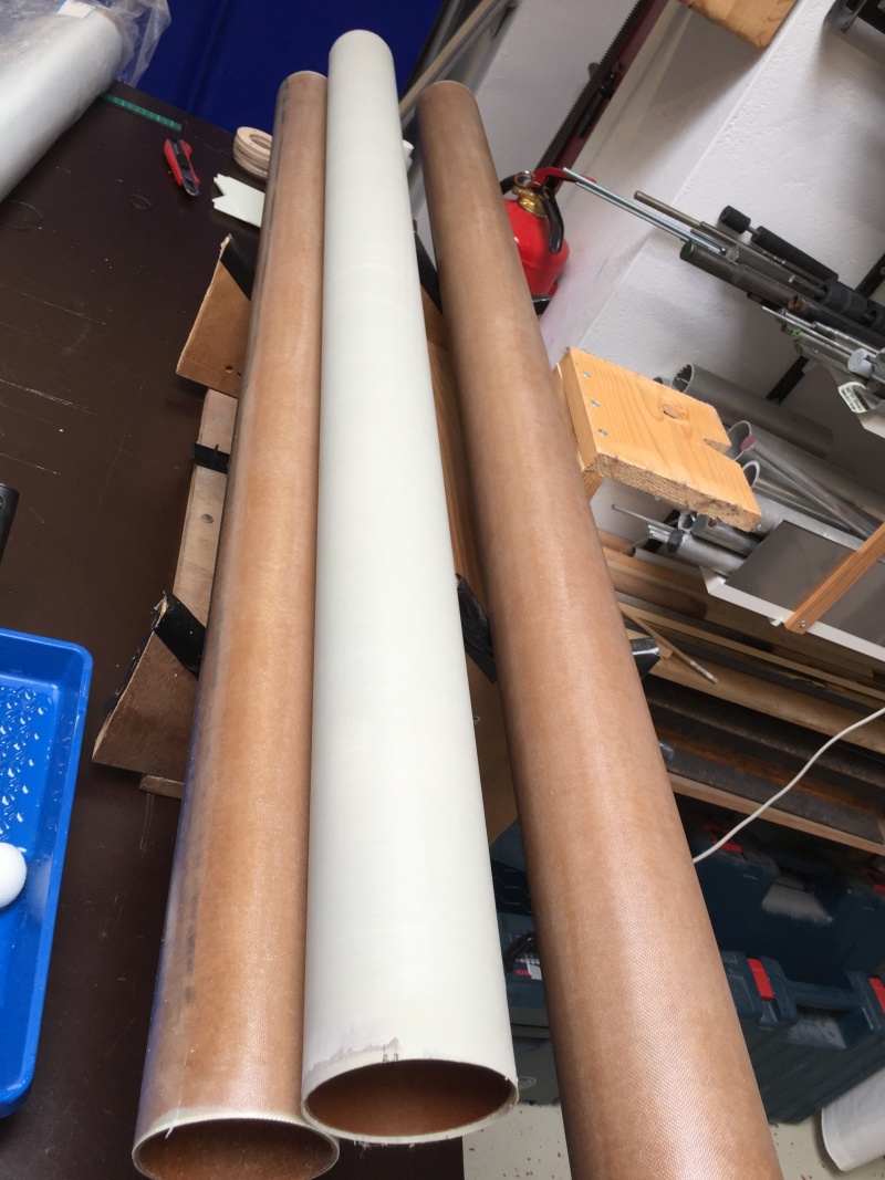 Sie werden gebaut aus Pertinaxrohren die ich aus England habe, 120 lang und von sehr hoher Qualität, viel stabiler als PML-Rohre. Die gibt es bei Black Cat Rocketry. Verglast sind die gefühlt 10x so stabil wie PML, und günstiger dazu. Einige Eindrücke: Always keep the pointy side up! |