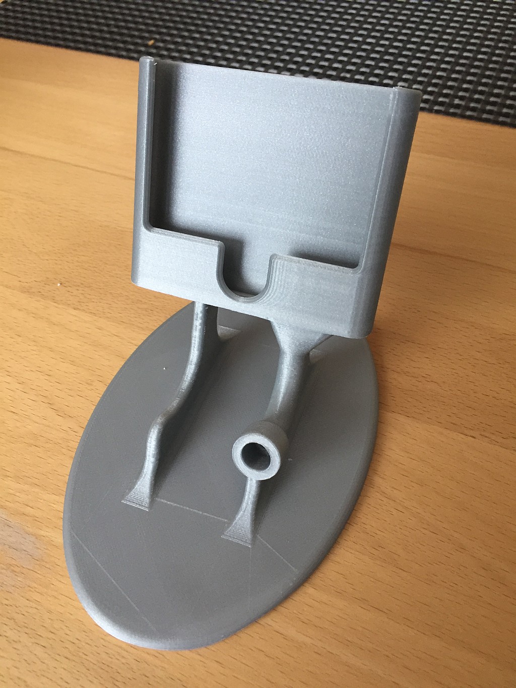 Das erste war ein Würfelchen, dann ein einwandiger Zylinder, klappte beides. Also auf zu Thingiverse und was netteres gesucht. Ein Smartphone-Ständer sollte es sein, in die Slicer-Software von Ultimaker geladen und rauf auf die Maschine. Tja, und heute morgen stand das auf der Glasplatte: Fürs erste bin ich also schon mal ordentlich begeistert, die Maschine läuft out-of-the-box und liefert Spitzenergebnisse Fühlt sich übrigens glatt an, auch wenn es rillig aussieht. Das Teil ist aus PLA gedruckt und hat um die 10 Stunden gebraucht, Speed war default, also noch nichts optimiert. Next one is: https://www.myminifactory.com/object/saturn-v-rocket-29283 Geändert von Lschreyer am 22. Juni 2017 um 08:37 Always keep the pointy side up! |