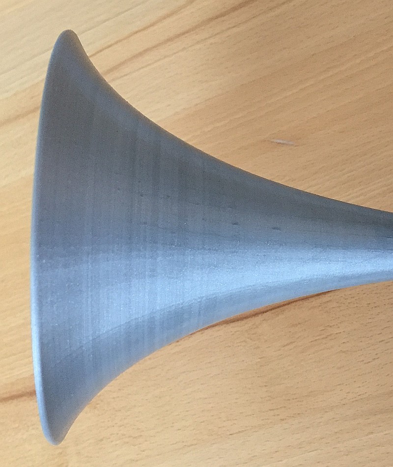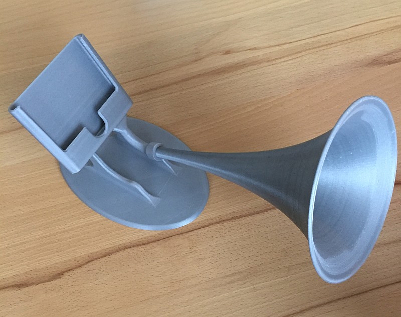 Ich wüsste noch nicht warum ich auf ABS wechseln sollte, das PLA geht super. Habe heute Nacht mal die Tröte zu dem "Iphone Gramophone" gedruckt, gut 20 cm hoch. Das wollte ich mal testen, weil ich vor allem Spitzen drucken möchte, solche Formen gehen also gut wie man sieht: Das ist übrigens alles mit "Werkseinstellungen", so aus der Schachtel, eingeschaltet, Filament eingeführt und den Tisch noch kurz ausgerichtet, geht in 1 Minute. Deshalb habe ich diesen doch recht teuren Drucker gekauft, es gibt sie auch schon ab 200 Euro, aber da hat man dann jede Menge Ärger, bis alles läuft dauert es. Der UM2 läuft sofort perfekt, Geändert von Lschreyer am 23. Juni 2017 um 08:13 Always keep the pointy side up! |