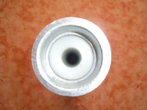 Hier noch ein Bild von der neuen Düsenbohrung ( 7,5mm ) Die Nachbearbeitung von der Einspritzdüse kann ich erst nach der Spätschicht machen. Die Berechnung hat immer noch Thomas Hier in paar technische Daten des Hybrids: Brennkammervolumen :<0,7 Liter Düsenbohrung : 7,5mm Einspritz Dm : 1,25mm Brennkammer Dm : 43,7mm Bennzeit : ca 4,5 Sek gruß: Hermann