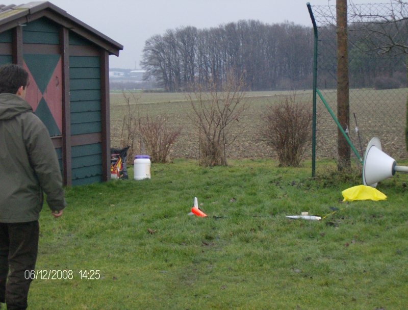 Das war mal wieder richtig kultig! Ein Lob für die tolle Organisation und das lecker Chili! Hier mal ein paar Bilder von mir (lade gerade alles ins Archiv hoch). Ralfs Big Red auf dem Weg in die Waschküche: Hier zwei weitere Raucher: Stefans Jayhawk: und ab dafür: fang! Foootoooo: Plopp! Diese schöne Rakete muss definitiv fliegen und darf nicht im Schrank verstauben! Bäckchens WaRa, mittlerweile ein Klassiker: beim Präppen: Planschie-Spielwiese: Onboardvideo von meiner Roten ... mit nachfolgendem crash. Man sieht noch die Splitter vom Fallschirmmodul fliegen: Simons Rak beim Erstflug: Holgers BSD Horizon: Am Schirm: Gruß Robert |