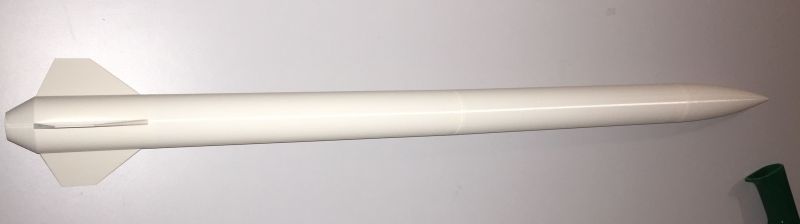 83 cm lang, 44mm Durchmesser und wiegt mit allem Drum und Dran 183 gramm. Auf einem D9 würde sie um die 380m hoch fliegen sagt Rocksim. Sieht ziemlich schnieke aus finde ich, definitiv wert das näher zu untersuchen. Gedruckt wurde sie mit PLA/PHA, Fincan, 2 Rohre und Spitze. Always keep the pointy side up! |
