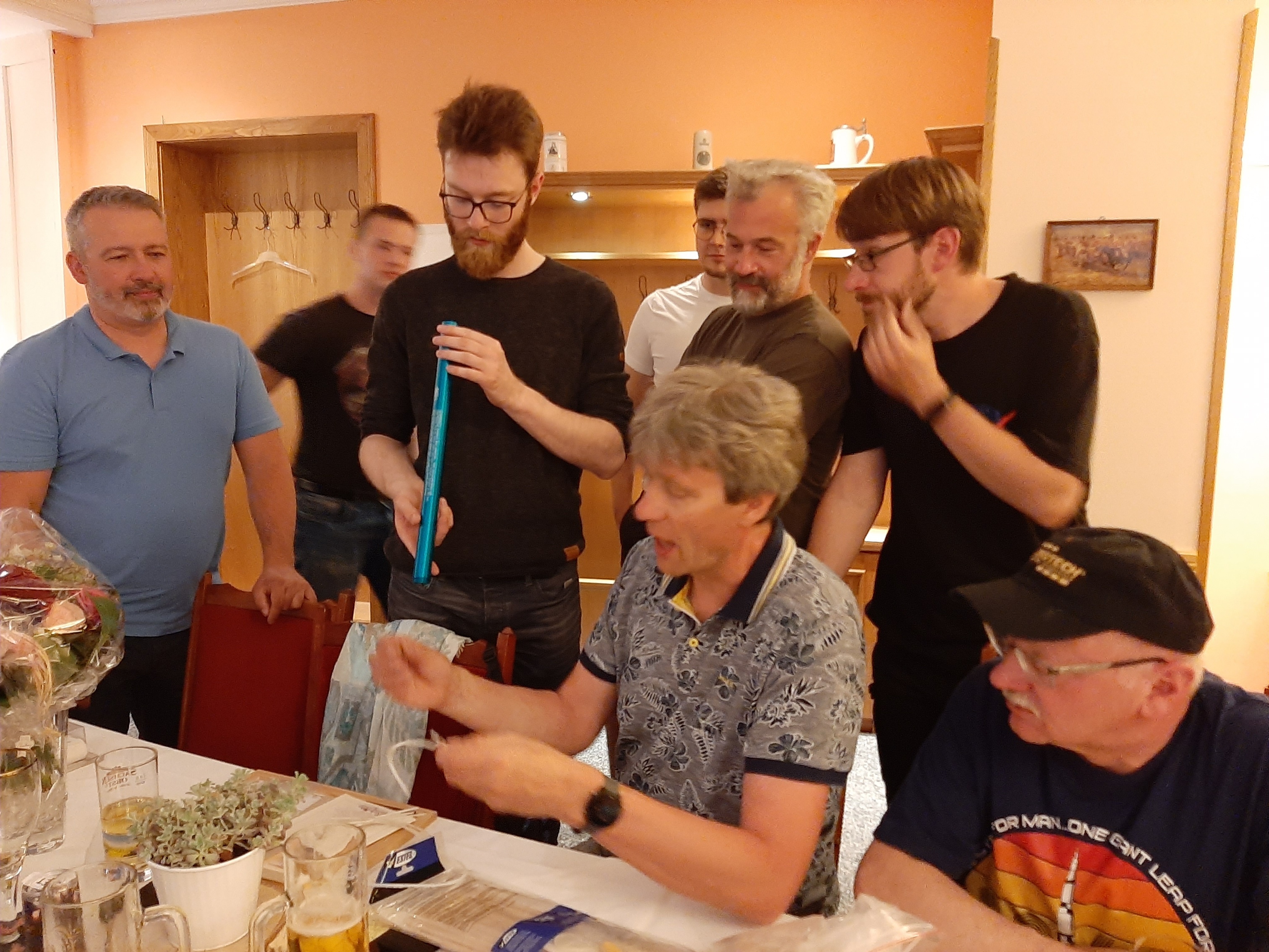 Manche Gewinner konnten es garnicht mehr abwarten und bauten ihren gewonnen Bausatz gleich am Tisch zusammen um ihn am nächsten Tag gleich auf den Flugfeld zu fliegen....