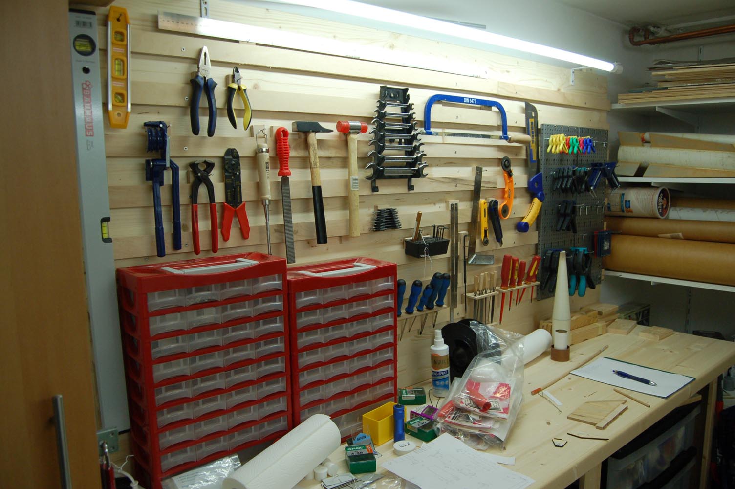 Meine Werkstatt ist langsam in einem brauchbaren Zustand. Am besten finde ich eigentlich die 2x LED-Röhren mit jeweils über 2000 lm und in tageslichtweiß. Leider habe ich einen Maschinenstellplatz zu wenig, so dass entweder 3D-Drucker oder die noch neu aufzubauende kleine Stepcraft-CNC-Fräse jeweils unter dem Tisch wohnen müssen. Und die Rohre müsste man eigentlich um 90° gedreht lagern (können), damit man einen besseren Überblick über den Bestand hat. Oliver