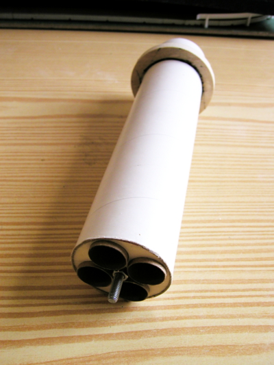 So langsam macht die Wasserfall Fortschritte. Nachdem ich alle Fins an Körperrohr und Heckkonus angepaßt habe wurde erst einmal im Heckkonus der Kuppler eingeklebt. Das 50mm Innenrohr wurde verkürzt sodass es nicht mehr am Baffle anliegt. Anschließend wurde der Motormount mit dem Innenrohr verklebt. Zur Stabilisierung wurde dann im Kuppler der Zentrierring für das Innenrohr eingepaßt. Innenrohr mit Motormount mit dem Heckkonus und Zentrierring verklebt.Das 75mm Körperrohr mittig geteilt und beide Hälften mit dem Baffle verklebt. Der Kuppler für die Spitze wurde verstärkt und dann erstmal mit der Spitze und vier Schrauben verbunden. Das hat für mich den Vorteil das später notfalls noch Trimmgewicht in die Spitze getan werden kann. Nach dem zusammen stecken habe ich alles mal gewogen: 340 Gramm bis jetzt. Nun muß ich alles noch spachteln und auch lackieren, was wiederum zu etwas mehr Gewicht beitragen wird. VG Michael Aus jedem Versuch wird man etwas mehr kluch!? |