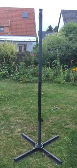 Gestern habe ich einen neuen Sonnenschirm gekauft für die Terrasse. Und als ich mir den alten so ansah, kam mir der Gedanke, dass sich daraus doch einfach eine prima Startrampe bauen ließe: