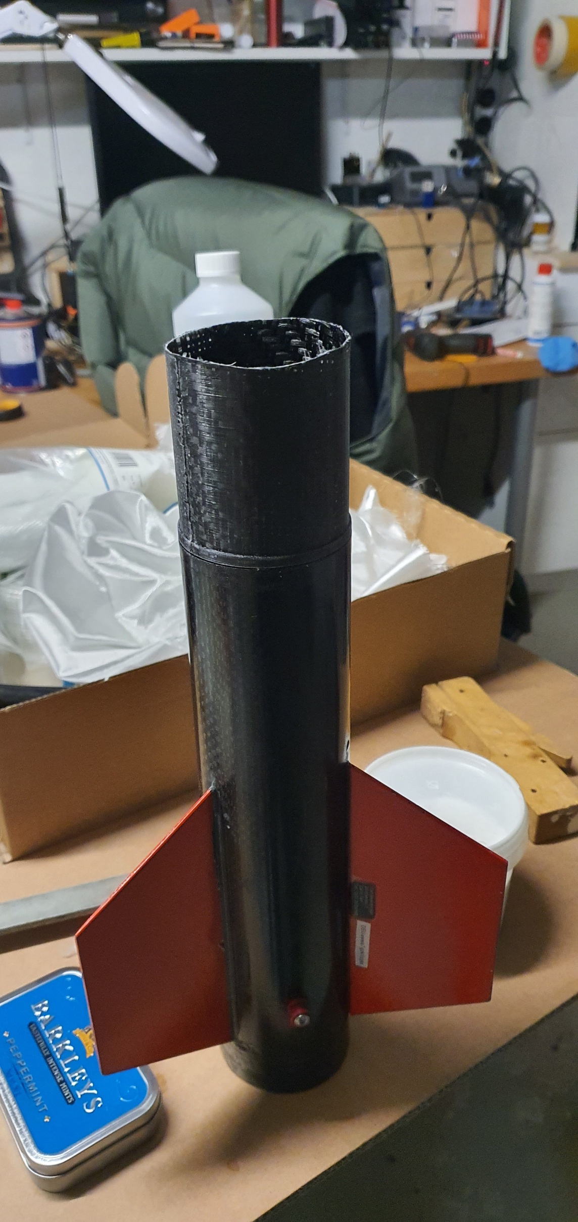 Hi, Baumwollflocken und Epoxy. Zusätzlich habe ich noch Kohlenfaser in die Rille gelegt. Rohr und Booster stecken mit dem Kuppler perfekt gerade zusammen.