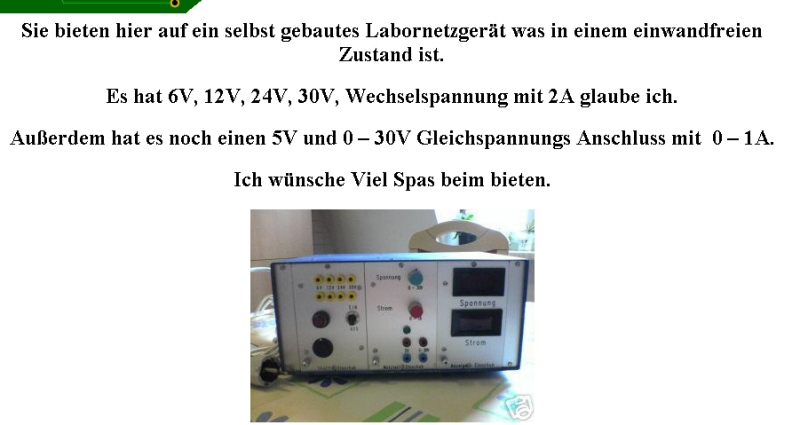 Ein Ampere reicht mir. und Wechselspannung brauche ich nur ab und zu zum experimentiren! Zudem würde ich mir ansonsten Das Gerät von Polin holen für 35,90€ 0-30V 0-2A regelbar. Mfg fabian